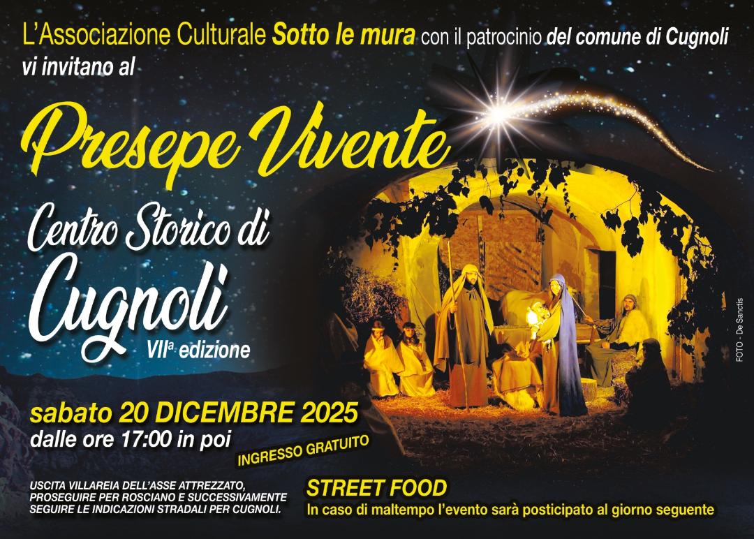 Si pubblica di seguito la locandina dell'iniziativa Presepe Vivente - Centro Storico di Cugnoli - VII Edizione - sabato 20 dicembre 2025.